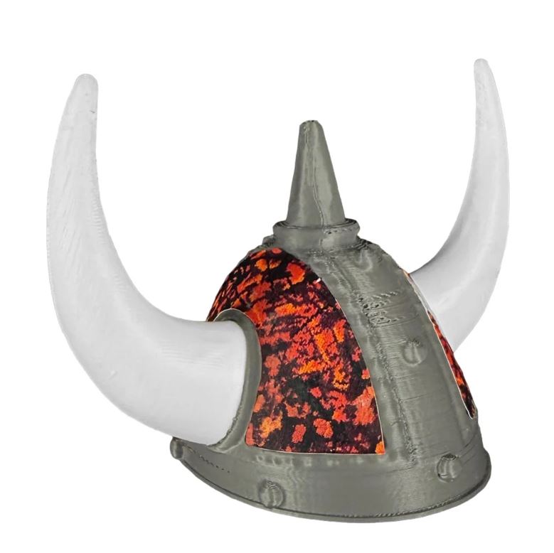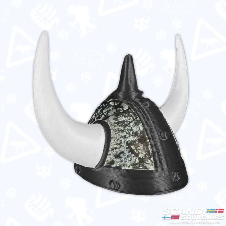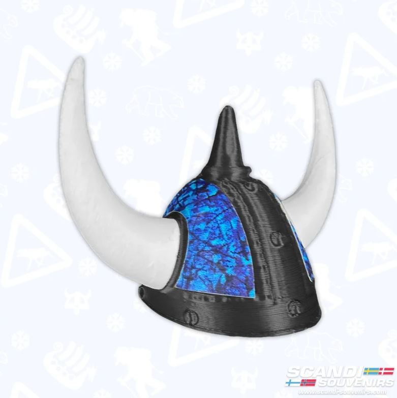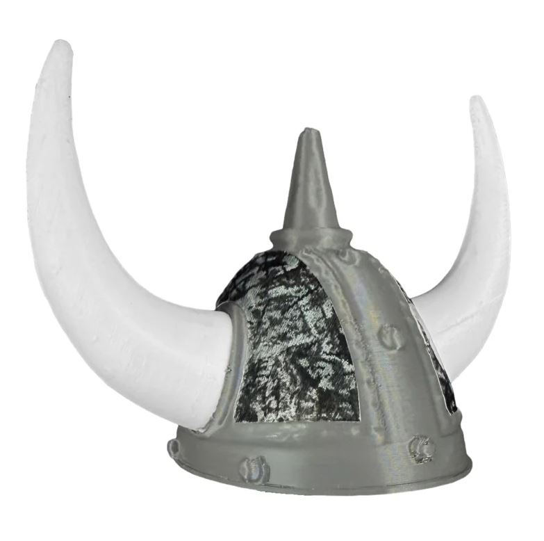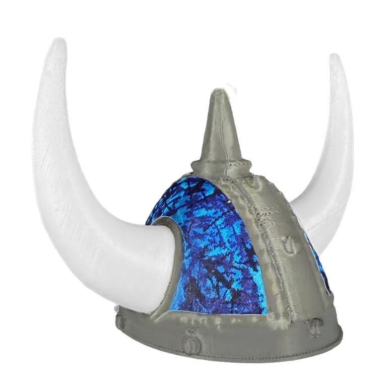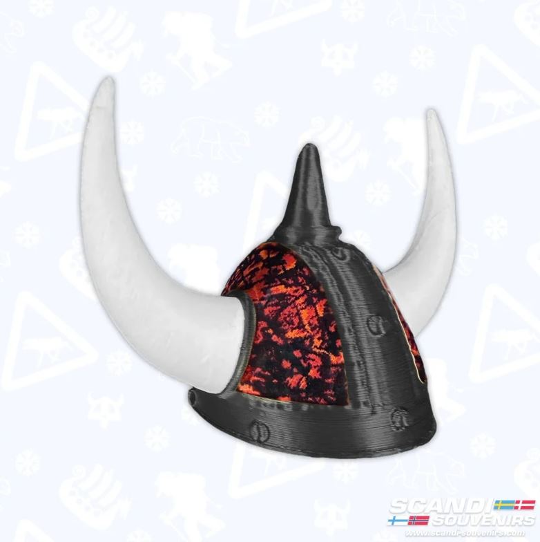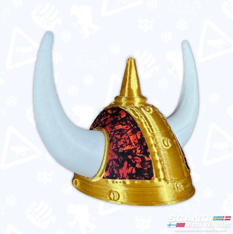 Design: Mini-Wikingerhelm mit dänischem Plüschmuster und weißen Hörnern