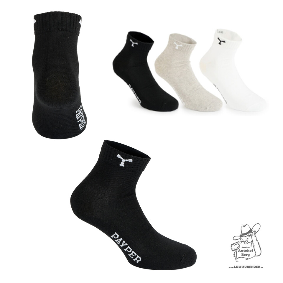 Immer ein 3er Set von einem Paar schwarzen, grauen und weißen Socken.