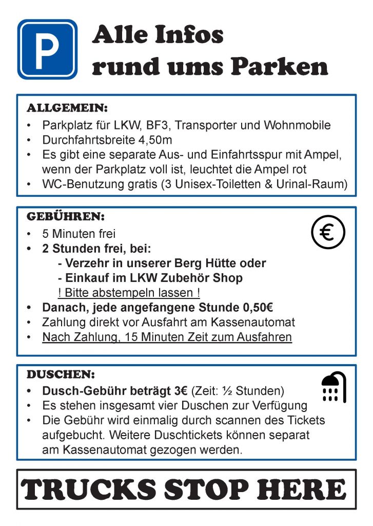 Wir möchten Euch allerliebst und herzlichst bitten, benutzt die ausreichend vorhandenen LKW-Parkplätze hinter der Schranke.